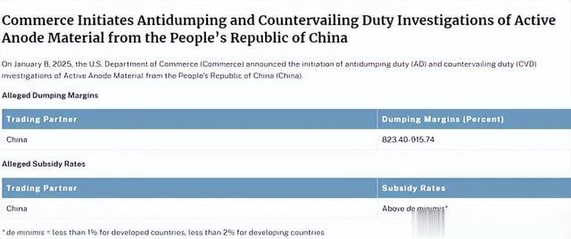 回顾2025年1月7日,应美国行业协会the American Active Anode Material Producers于2024年12月18日提交的申请,美国商务部对进口自中国的活性阳极材料发起反倾销和反补贴调查。